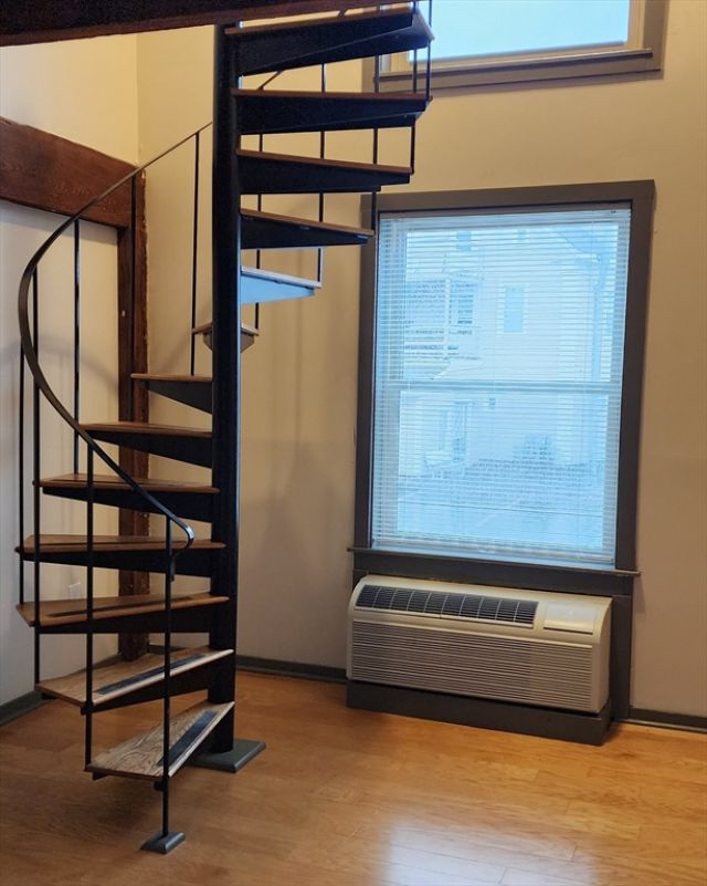 Spacious Lofted 1 bedroom, 1 bath apartment located in Grain Mill building in downtown Mansfield. The unit has galley style Kitchen with gray cabinets and living room with large windows and spiral staircase to the second floor with large bedroom and walk in closet. Also on this level is the full bathroom with tub/shower and updated vanity. Parking is available on street with parking permit which is $20.00 for the year. The building is located downtown and walking distance to numerous business and restaurants as well as the train station. Set up an appointment to view!