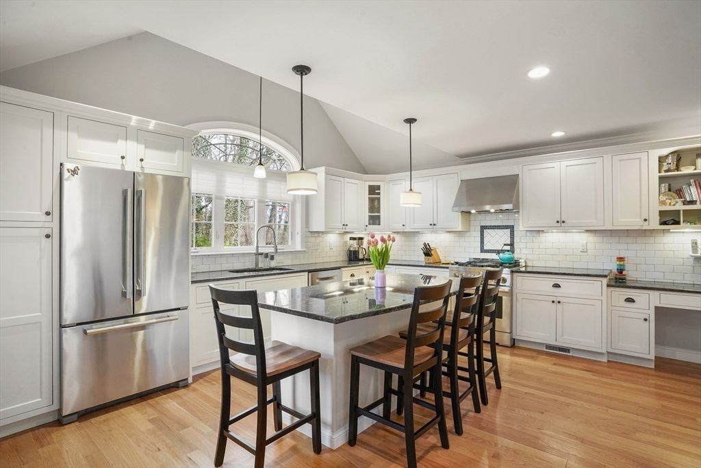Rare, fully renovated Colonial in ideal Marblehead location! Front porch entry to your spacious living level with eat-in Chef's kitchen - center island, upgraded Jenn-Air and Bosch SS appliances, ample storage & granite counter tops, French doors to rear deck, patio, flat lawn & outdoor shower, perfect for entertaining; adjacent mudroom nook and garage access. Formal dining and over-sized family/living room w gas fireplace, den/office and powder room complete the living level. Second floor features an enviable primary suite with cathedral ceiling, gas fireplace, generous walk-in closet and Carrara marble bath w walk-in shower, double vanity...read more