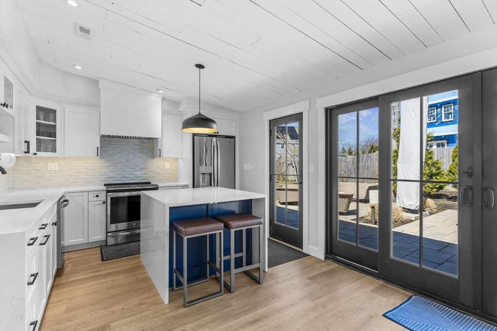 This stunning 3-bedroom, 2 1/2 bath ranch offers a perfect blend of modern design & coastal living. Thoughtfully designed w/ contemporary & unique aesthetic. This home features a bright sunlit living room centered around a showstopping honed marble fireplace. LVP flooring runs throughout complementing an open-concept stylish kitchen with stainless appliances, beautiful waterfall quartz & a generously sized kitchen island. Ideal for both everyday living & entertaining. Step outside to a spacious stone patio, creating a seamless indoor-outdoor lifestyle. A beautifully finished lower level provides additional living space, perfect for a media...read more