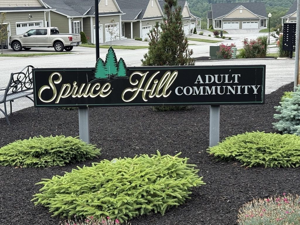 Welcome to Spruce Hill, a beautifully maintained 55+ community offering effortless, one-level living in a like-new condo. This inviting home features a dine-in kitchen w/ a center island, granite countertops, SS appliances, & white cabinetry enhanced by crown molding & soft-close details. The kitchen flows seamlessly into a bright and airy living room/Dining room with vaulted ceilings, a propane fireplace, and a slider leading to a covered composite porch/deck??perfect for enjoying serene views of wildflowers & mature trees. The generous primary suite offers abundant closet space & a private bath complete w/ a double vanity, granite counters,...read more
