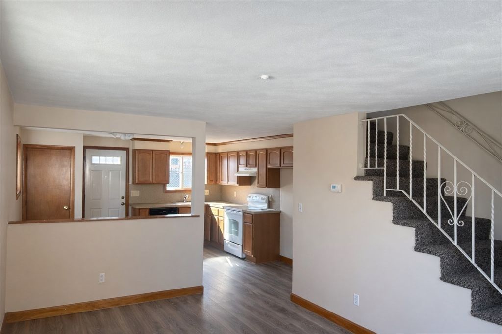 Well-maintained townhouse-style apartment offering a functional layout and everyday convenience. The main level features a bright living area with updated flooring, flowing into a kitchen with ample cabinet space. Upstairs, youll find two generously sized bedrooms with closets, and a tiled full bath. Additional lower-level space provides flexibility for storage or bonus use. One off-street parking space included. Conveniently located, close to shopping, dining, and Wellington Station (orange line). A great opportunity for low-maintenance living in a commuter-friendly location. Heat included.