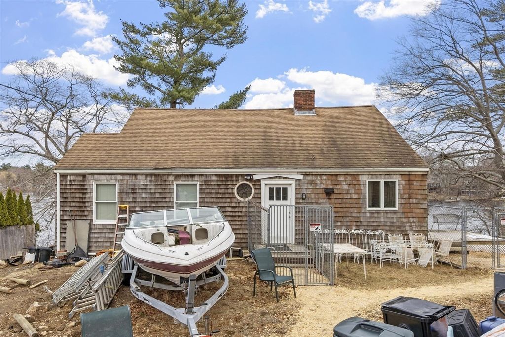 Positioned directly on the waterfront of Chebacco Lake with unobstructed eastern views, on a quiet, dead-end street, this spacious, 2200+ SF Cape-style property offers remarkable potential for its next owner. The home needs TLC but has great bones. The first floor features an updated kitchen with hardwood flooring, a bright sunroom overlooking the lake with abundant windows, a bedroom with lake views, a second bedroom that could be used as a flex space, a living room with a fireplace, and a full bathroom. The second level includes two rooms with lake views: a bedroom with a partially finished full bath, a second room that could be a bedroom...read more