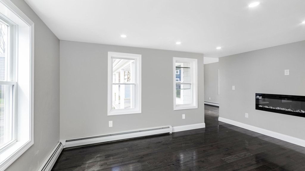 Fully renovated 3-bedroom, 1-bath single-family home available now at 23 Lynn St in Peabody. This home features a stunning vaulted ceiling kitchen with granite countertops, white shaker cabinetry, subway tile backsplash, and stainless steel appliances including range, dishwasher, microwave, disposal, and refrigerator. A first-floor bedroom doubles as an office, with two spacious bedrooms upstairs. The modern bathroom offers a glass-enclosed shower and soaking tub. Beautiful dark hardwood floors, recessed lighting, and a fireplace add warmth throughout. In-unit washer/dryer hookups and a partially fenced yard with a covered porch. Two off-street...read more
