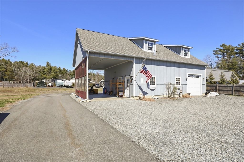 Live, Work, Invest in the possibilities. Commercial Amish built Workshop, approximately 2,000 square feet with overhead door, dormered 2nd floor and carport situated on 1.33 acres Plus an oversized 2 car garage, storage shed and a Beautiful Classic 3 bedroom Cape Colonial . This property has been updated and meticulously maintained. Great visibility. Fully fenced and gated. Commercial General zone with MBTA designation. Frontage on Cranberry Highway/Rte 28 near Wareham Village Center.
