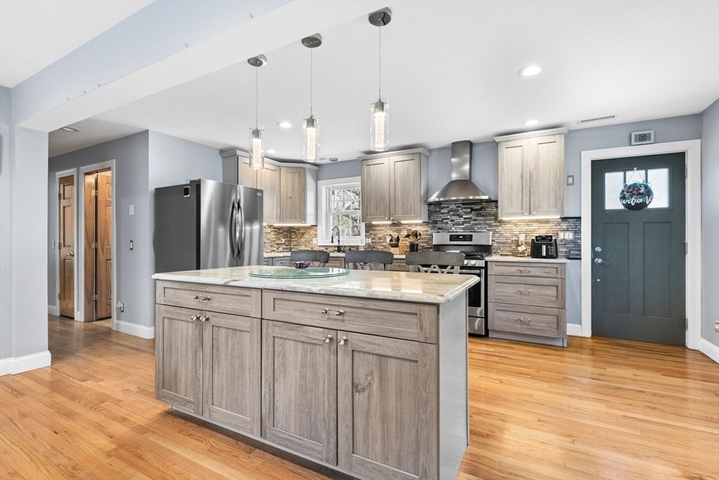 Well-maintained 4-bedroom, 2 full bath home featuring a primary bedroom with its own full bath and hardwood floors throughout both levels. The updated kitchen includes a 6-foot island, pendant lighting, and tile backsplash, opening to a bright living area with recessed lighting and a cozy pellet stove. Enjoy year-round comfort with central air on the first floor, mini splits, and efficient two-zone gas heat with Nest thermostats. Outside, youll find a large deck, above-ground pool with its own deck, and a spacious driveway that wraps around the home, offering ample parking and easy access, while solar panels help keep energy costs down.