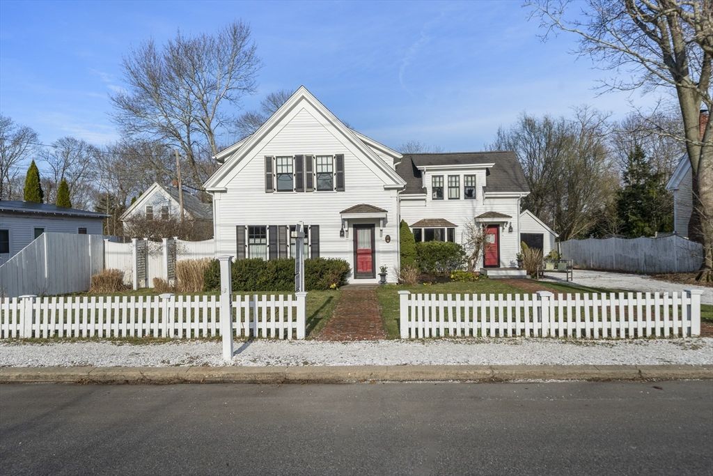 Charming colonial farm house built in 1900 with many modern updates in prime Duxbury village location at Halls Corner. Walk to grocery store, restaurants & town shops. 4 bedrooms, 3 full baths, high ceilings & wide pine floors throughout. A 2 story addition in 2007 added a second floor primary bedroom suite & a first floor step down oversize family room with floor to ceiling fieldstone fireplace with beautiful windows, moldings & built in bookshelves, perfect for large family gatherings! French doors from the family room lead to a cathedral covered three season porch with its own brick fireplace, overlooking the beautiful back yard with...read more