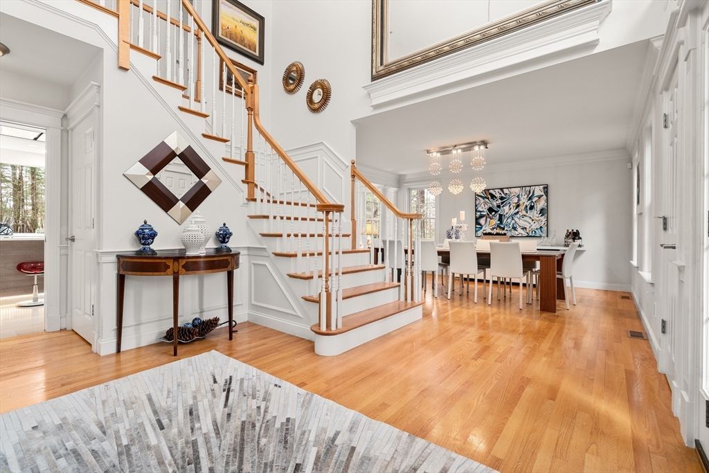 This stately home is majestically sited and set back for privacy on an impressive mini estate setting. The stone entrance columns set the tone for a first impression. The main level showcases a versatile floor plan with a French door to a private library/office, an elegant living room open to the spacious banquet-size dining room and a magazine-worthy powder room. The recently renovated designer kitchen has high-end appliances, an expansive island and an exceptional treatment of glass with views to the park-like setting. The stunning two-story family room with a fireplace is open to the kitchen. The second level features a dramatic primary...read more