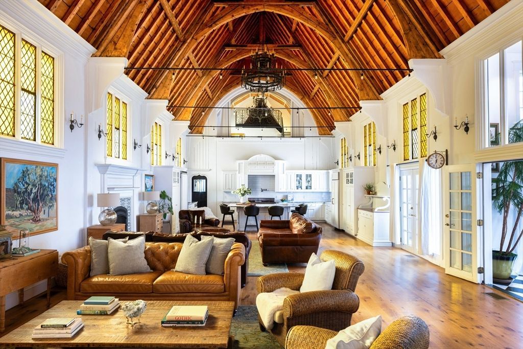 This home is a truly extraordinary offering. An iconic 1887 former chapel in Groton Center, once owned by the prestigious Groton School, now beautifully converted to a single-family residence while preserving its striking Gothic Revival architecture. Thoughtfully designed for multigenerational living with remarkable versatility, this home easily accommodates extended family, guests, or income-producing possibilities. A spacious apartment above the four-car garage expands the options even further. The connected lower level offers excellent privacy with its own entrance and features a full kitchen, two bedrooms, an office, laundry, and a bonus...read more