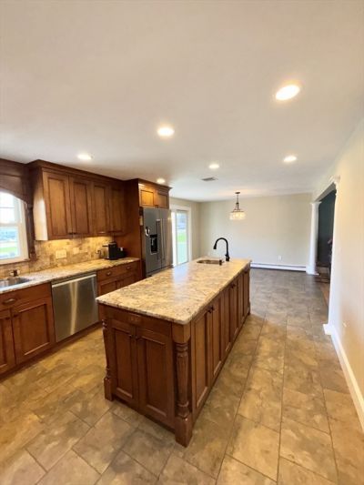 This home is a must see! Beautiful 3BR garrison colonial featuring a gorgeous, culinary kitchen with oversized island, wet bar, custom Alder cabinetry, granite countertops, recessed lighting and stainless steel appliances which leads out to oversized composite deck. Large, peaceful backyard bordering a cul-de-sac neighborhood perfect for summer barbecues and entertaining! Newly finished mudroom leads up to a well appointed, bright accessory apartment with upgraded cabinets and appliances, large bedroom with walk in closet and oversized bathroom! Finally, the garage is a dream for car enthusiasts or for those with hobbies! Enormous garage...read more