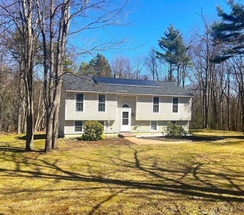 This Split entry home is designed with features that make a difference in the quality of life. . . Extra long windows let in tons of natural light. Truely spacious rooms and closet space make organizing life's stuff easier (Need more storage? There's a 16 by 12 shed for the extras.) The jetted tub is just right for the times when the body and mind need a break! Eco-Friendly energy producing roof mounted solar helps with the budget bulge. Appliance package includes stove, refrigerator, washer, dryer and pellet stove. Royalston is a small town packed with hiking trails, 3 waterfalls, Tully Lake and tons of other nature oriented areas...read more
