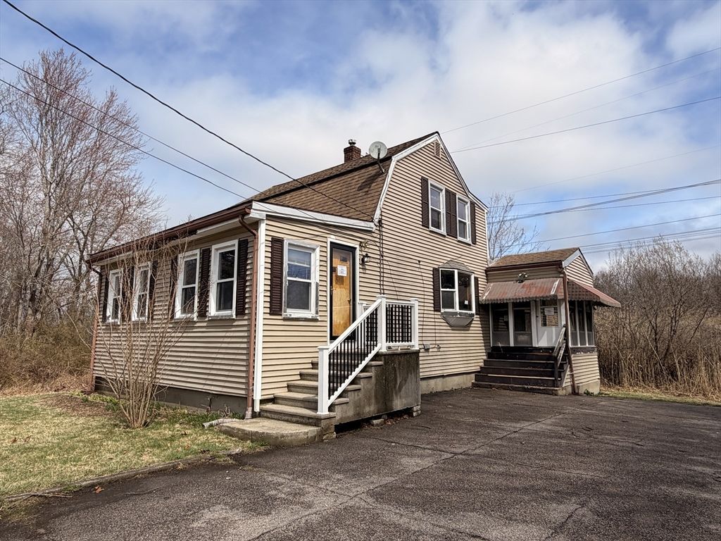 This bungalow/cottage style home is located on a dead end street and offers vinyl siding, replacement windows, eat-in kitchen, dining room, living room and 3-4 bedrooms. There is off street parking, large lot, storage shed, some hardwood flooring, full basement and an enclosed porch.