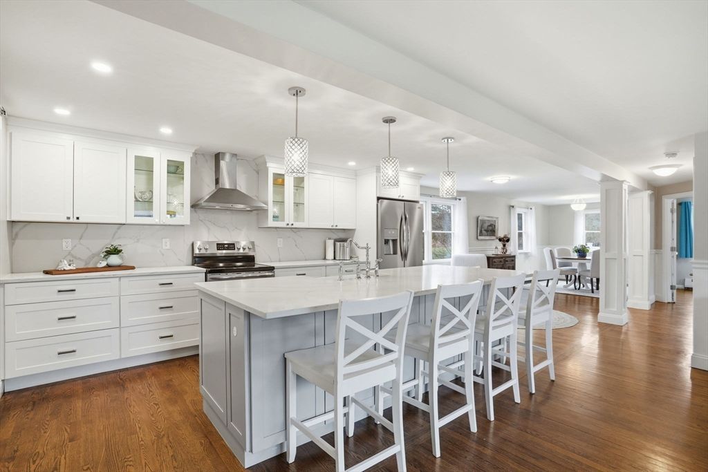 Beautifully renovated gambrel in the heart of Scituate, offering the best of South Shore living just moments from top schools, beaches, and the vibrant shops, dining, and marina at Scituate Harbor. Thoughtfully designed with a blend of charm and modern finishes, the home features a welcoming mudroom with custom built-ins, a striking family room with vaulted ceilings and exposed beams, and a designer kitchen with custom cabinetry, quartz countertops, stainless appliances, and an oversized island. The kitchen flows seamlessly into sun-filled living and dining spaces ideal for everyday living and entertaining. A beautifully updated bath and...read more