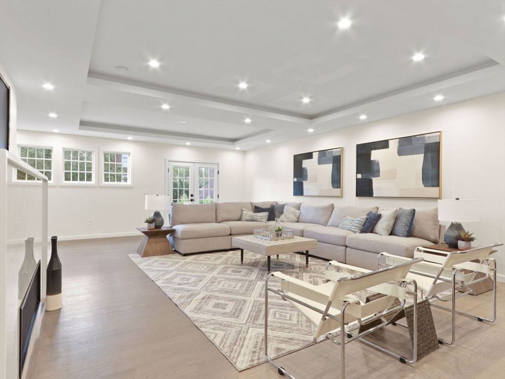 This gorgeous reimagined Colonial Revival has been fully updated. The first floor offers open-concept living with a stunning kitchen, featuring dark walnut and white cabinetry, high-end Wolf and SubZero appliances, quartz countertops, marble backsplash, double islands. A modern linear fireplace anchors the adjacent family room. The second level includes a luxurious primary suite with two walk-in closets and a spa-like bath, plus two additional bedrooms, a full bath, and laundry. Skylights on the third floor provide a sun-filled au-pair or teen suite, bright living area and en-suite bedroom. The lower level adds a spacious family room, a bonus...read more