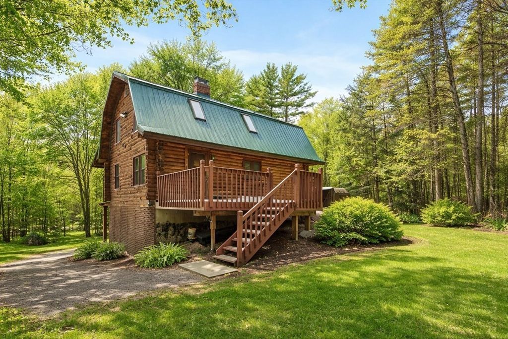 Nestled on nearly 6 private acres, 43 Greenville Rd, offers the perfect blend of rustic charm and modern comfort. Embraced by nature, this warm and inviting home offers 1,570 sq ft of beautifully crafted living space. The open-concept main level blends kitchen, dining, and living areas, anchored by a wood stove that radiates cozy comfort. A versatile den, 4th bedroom or home office, full bath with laundry, and exposed log details enhance its rustic elegance. Upstairs, three tranquil bedrooms and a half bath await, including a skylit primary suite. Step outside to a covered front porch or sun-dappled rear deck, where wooded views and quiet...read more
