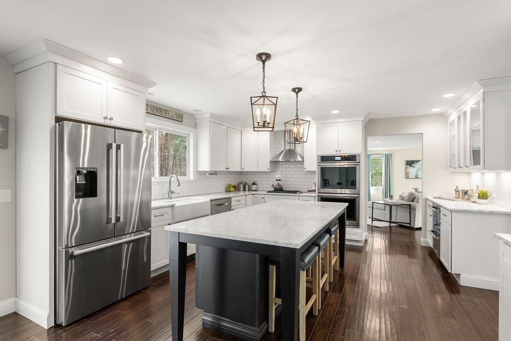 5 Captain Pierce is a beautifully updated Colonial with four finished levels of living on an acre of land, situated in a quiet cul-de-sac in desirable West Newbury north of Boston. The gourmet eat-in kitchen features marble countertops and gas cooking with attached deck for outdoor dining. An inviting living room centers around a stacked stone fireplace, creating a warm ambiance that flows into formal dining room and cozy den. Upstairs the primary suite features an expansive walk-in closet with custom built-ins storage and luxurious spa ensuite bath. Two generously-sized bedrooms, a second full bath, and laundry room provide comfort and practicality....read more