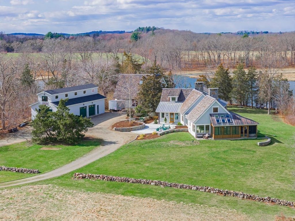 Rivers Edge?? a 4.6? acre waterfront estate offers 400' of frontage along the Essex River with sweeping panoramic views of the river, marsh, Crane Beach, Choate Island, and beyond. Abutting conservation land, the Cox Reservation, and across the river to the 165-acre Cogswells Grant, the setting provides privacy and permanently preserved natural beauty. The property offers a custom-designed 2002 Contemporary-style main residence with views from nearly every room, a separate three-bedroom guest house with elevated views of the marsh, and a substantial two-story barn/garage with scale and versatility for vehicles, boats, animals or workshop...read more
