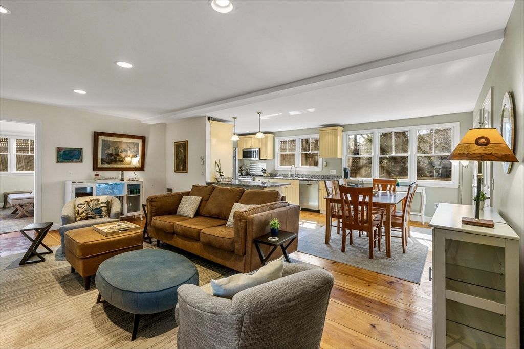 This charming Provincetown home blends warmth, character, and comfort. An enclosed wraparound porch invites you in, leading to wide-plank pine floors and a classic brick propane fireplace that creates a cozy living space. Tucked on a quiet, lightly traveled road just minutes from town, it offers both privacy and convenience. The first floor features an open-concept layout with a spacious dining area and a thoughtfully designed kitchen. The rear primary bedroom is a peaceful retreat with a vaulted ceiling and skylight, plus a large bath accessible from both the bedroom and main living area. Upstairs offers a generous guest bedroom with vaulted...read more