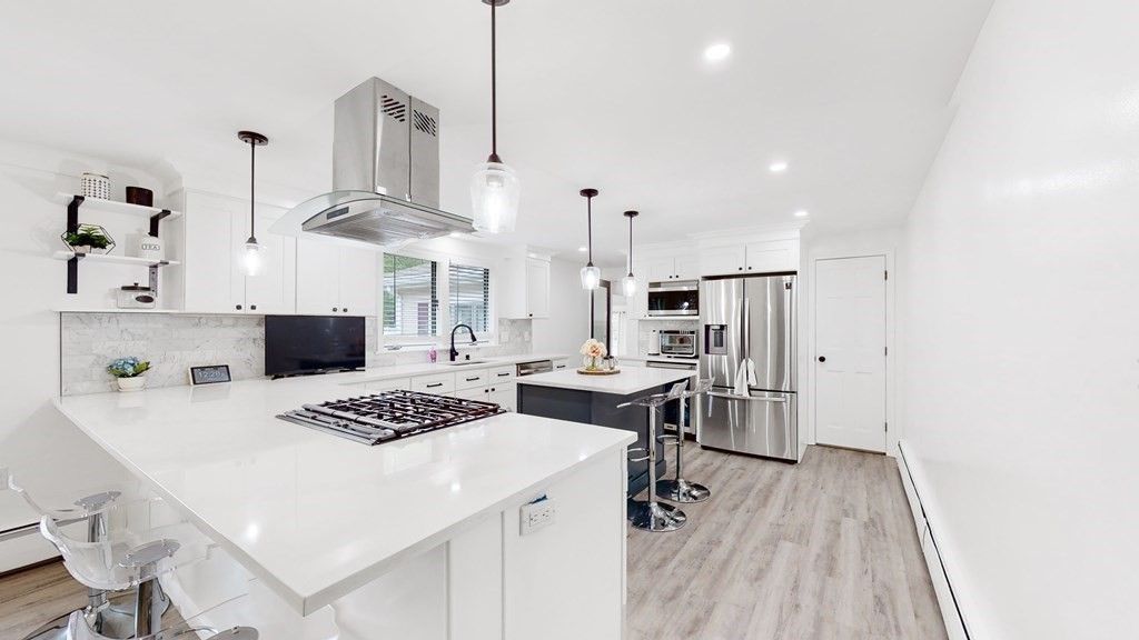 Welcome to this spacious 4-bedroom ranch-style home nestled in a quiet, peaceful neighborhood. Close to tax free Salem NH. This property features a 2-car garage, 2.5 bathrooms, and a massive yard complete with a fire pit and saltwater swimming pool??perfect for summer entertaining. Step inside to a warm and inviting living room highlighted by a cozy fireplace, built-in bookshelves, and a beautiful bay window. The newly remodeled kitchen boasts white shaker cabinets, stainless steel appliances, a stunning island, and tons of storage space, including a generous walk-in pantry that flows into the dining area. The bright, soundproof media room...read more