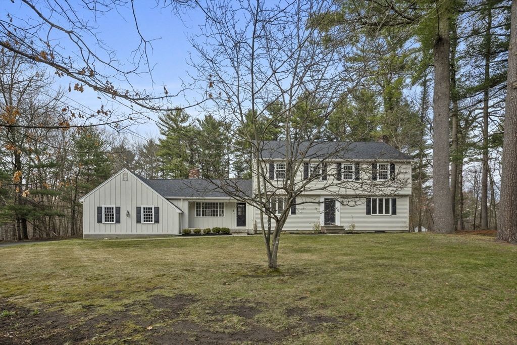 Newly renovated kitchen, hardwood floors, roof, bathroom, and more! Located in a perfect neighborhood known as North Hill Estates with sidewalks on both sides, this center-entrance Colonial features white cabinetry and gray/white countertops, opening to a fireplace family room with custom seating and access to a Trex deck overlooking a private, level 1.39 Acre lot in Lynnfield. The fireplace living room flows into the dining room, ideal for entertaining. A private first-floor office includes built-in shelving. Upstairs offers 4 bedrooms and 2 full baths, including a front-to-back primary suite with a remodeled gray/white bath. The main bath...read more